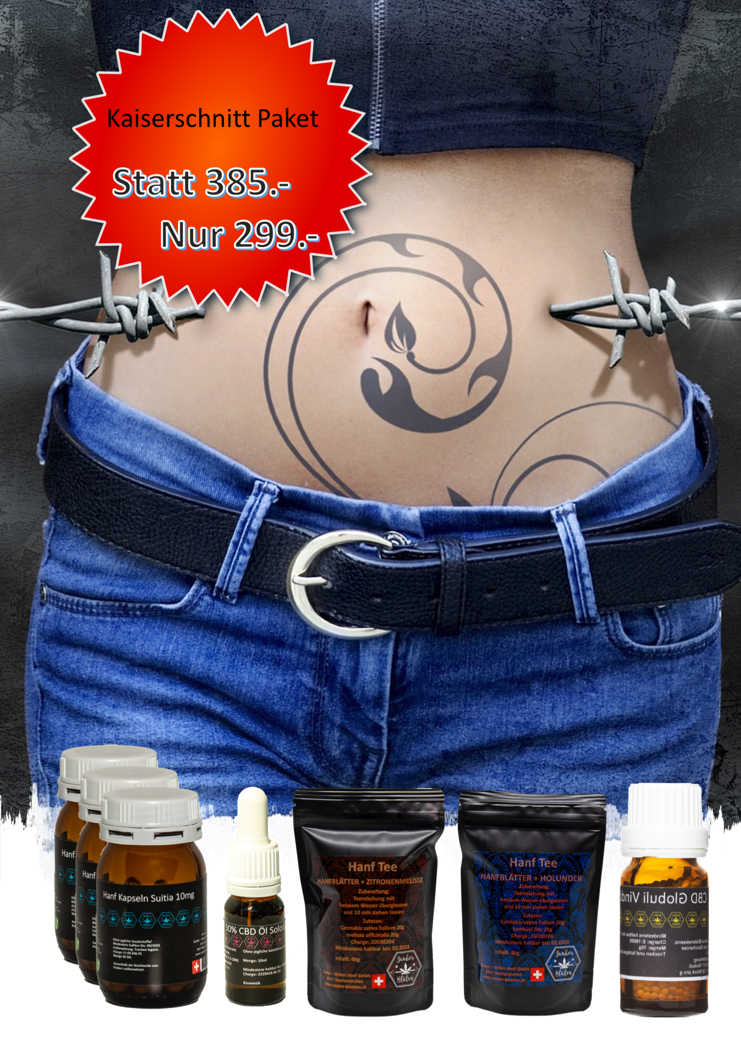 Das Kaiserschnitt-Paket wurde speziell für die Bedürfnisse nach einem Kaiserschnitt zusammengestellt. Es vereint die Kraft von Hanfprodukten, wohltuenden Tees und natürlichen Begleitern, um Körper, Geist und Wohlbefinden ganzheitlich zu unterstützen.